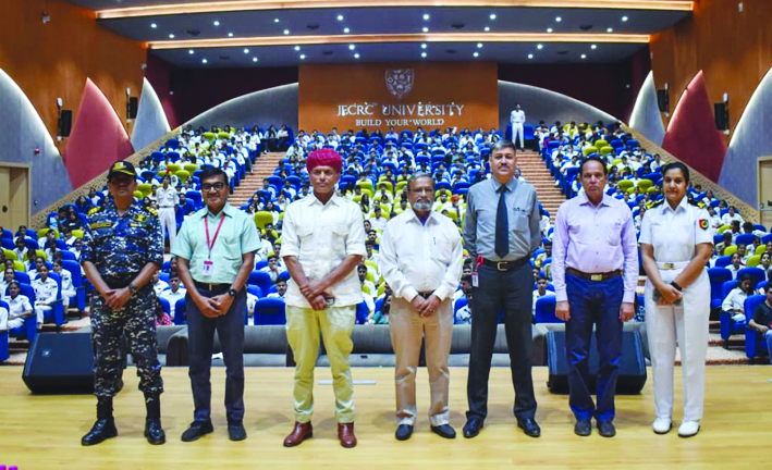 बिजऩेस रेमेडीज/जयपुरराष्ट्र निर्माण के प्रति समर्पण और युवा शक्ति में अटूट विश्वास का परिचय देते हुए, JECRC University के नेवल विंग N.C.C. द्वारा सोमवार को  Induction Ceremony का आयोजन किया गया, जिसमें भारतीय सेना के पराक्रमी अधिकारी, 21 पैरा (स्पेशल फोर्सेज) के पूर्व योद्धा और कीर्ति चक्र, शौर्य चक्र, सेना मेडल एवं वरिष्ठ सेना मेडल जैसे वीरता पुरस्कारों से सम्मानित ब्रिगेडियर सौरभ सिंह शेखावत (सेवानिवृत्त) ने मुख्य अतिथि के रूप में शिरकत की। यह कार्यक्रम जयपुर स्थित आर्मी और एयर विंग के कैडेट्स की उपस्थिति में एक ट्राई सर्विसेस का संगम बन गया, जिसका मुख्य उद्देश्य युवाओं में राष्ट्र सेवा का जज़्बा भरना था।