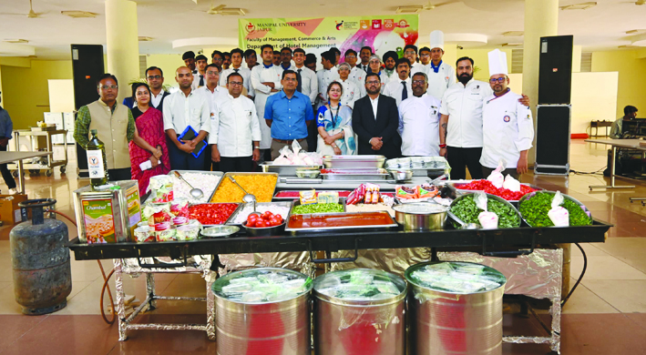बिजऩेस रेमेडीज/जयपुर  Manipal University  Jaipur के होटल मैनेजमेंट विभाग ने देश का सबसे बड़ा और सबसे भारी वेजिटेरियन शाक्षुका बनाकर LIMCA BOOK OF Records में शामिल होने का प्रयास किया है। यह खास डिश 8 फीट लंबी और 4 फीट चौड़ी थी, जिसका कुल वजन 323.7 किलोग्राम रहा। इस अनोखे व्यंजन को होटल मैनेजमेंट विभाग के विभागाध्यक्ष एवं प्रोफेसर शेफ डॉ. सौरभ शर्मा के नेतृत्व में तैयार किया गया। डॉ. शर्मा ने बताया कि इस रिकॉर्ड के दावे की सरकारी अधिकारियों द्वारा पुष्टि की गई है। यह डिश 1 घंटे 23 मिनट में तैयार की गई और इसमें 4 शेफ एवं 69 विद्यार्थियों की टीम ने भाग लिया।