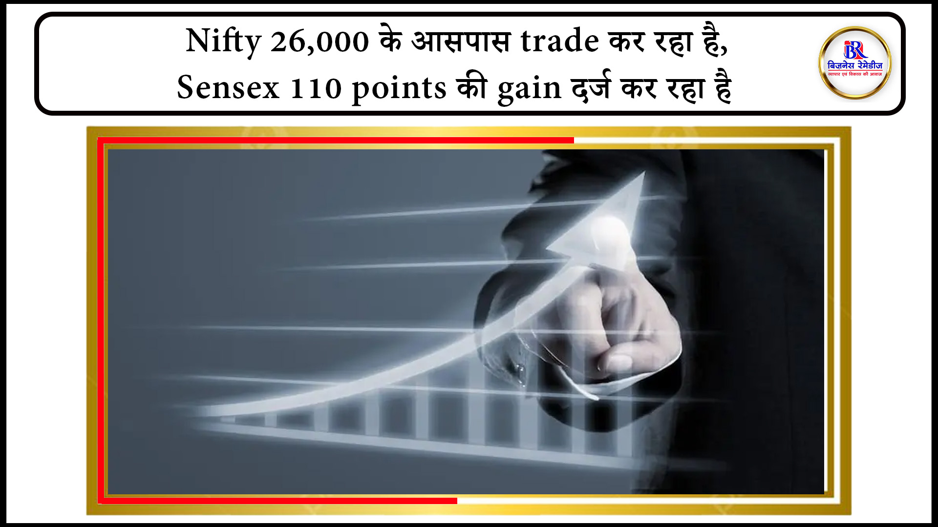आज के Stock Market सत्र में भारतीय equity market सकारात्मक रुख के साथ open हुआ और शुरुआती कारोबार में Sensex 110 points की gain के साथ trade करता नजर आया। वहीं Nifty भी 26,000 के अहम स्तर के आसपास move करता दिखा, जिससे निवेशकों के बीच confidence बना रहा। बाजार की मजबूती में बड़े heavyweight stocks का अहम योगदान रहा। Tata Steel, Jio Financial, Max Healthcare, Kotak Mahindra Bank और Bajaj Finserv के शेयरों में अच्छी buying देखने को मिली, जिससे benchmark indices को सपोर्ट मिला। इन शेयरों में आई तेजी ने market sentiment को और मजबूत किया।
