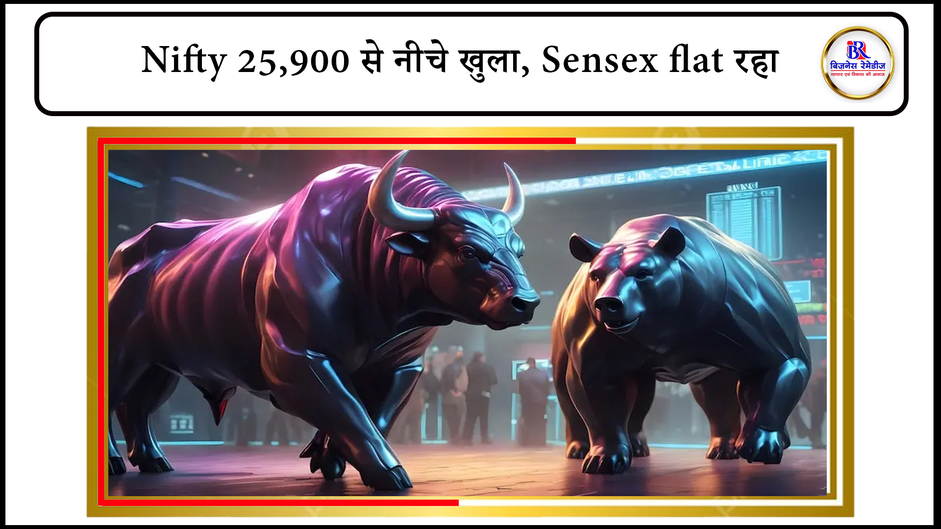 Indian market की शुरुआत cautious mood में हुई। Nifty index सुबह के session में 25,900 के level से नीचे खुला और शुरुआती कारोबार में सीमित दायरे में चला। Sensex index flat रुख के साथ कारोबार कर रहा है, जिससे overall market sentiment balanced दिखाई दिया।