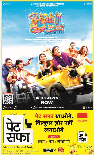 एंटरप्रेन्योर और इन्वेस्टर डॉ. संजीव जुनेजा ने ‘भाबीजी घर पर हैं!’ फिल्म की टीम को फिल्म के अच्छा बिजनेस करने की शुभकामनाएं दी हैं। वहीं फिल्म के कलाकारों का कहना है कि जब मन खुश और शरीर हल्का होता है, तभी मनोरंजन का असली मजा आता है। इसी सोच को ध्यान में रखते हुए दिविसा हर्बल्स प्रा. लि. के प्रवक्ता ने बताया कि फिल्म ‘भाबीजी घर पर हैं!’ की सकारात्मक ऊर्जा और दर्शकों से जुडऩे की क्षमता को देखते हुए, उन्होंने अपने सर्वोत्तम प्रोडक्ट पेटसफा आयुर्वेदिक ग्रेन्यूल्स एवं टेबलेट्स को फिल्म की प्रमोशन के लिए चयनित किया है।क्योंकि यह पेट संबंधी बीमारियां जैसे कब्ज, गैस, एसिडिटी को दूर कर आपको देता है हर पलको खुशी से जीने का अहसास। पेट सफा आयुर्वेदिक ग्रेन्यूल्स एवं टेबलेट्स बहुमूल्य 16 जड़ी बूटियां जैसे सोनामुखी, कालानमक, अजवायन, हरितकी, निशोथ, सर्जिक्षार, सेंधा नमक, सौंफ एवं आंवला आदि के मिश्रण से तैयार आयुर्वेदिक औषधि है। यह पहली रात से असर दिखाता है और इसकी आदत भी नहीं पड़ती। यह पूर्णत: आयुर्वेदिक है।