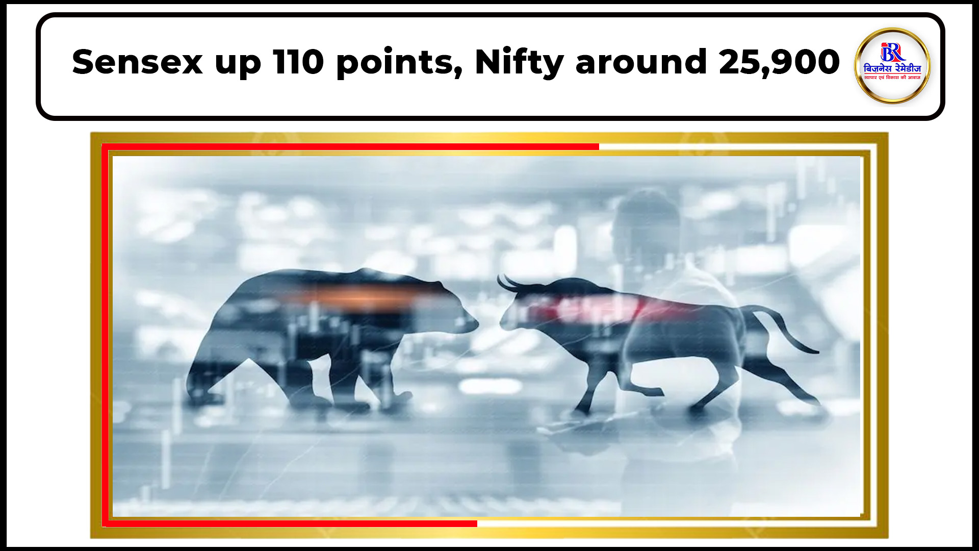 Sensex 110 points ऊपर, Nifty 25,900 के आसपास